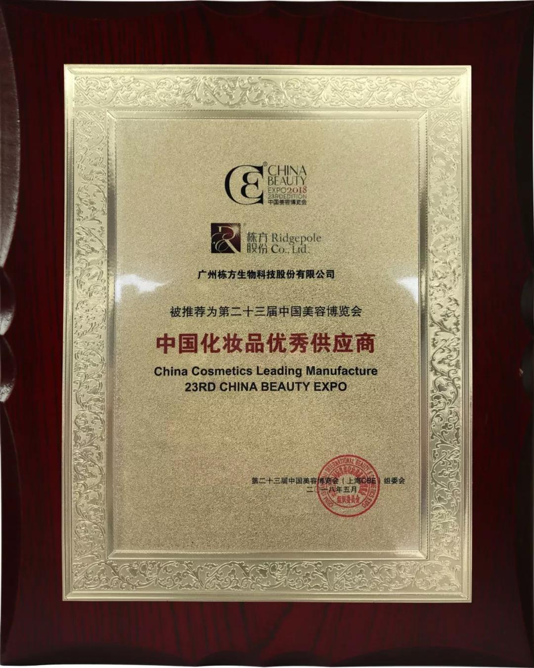 此次展會(huì),棟方股份憑借其多年來在促進(jìn)化妝品供應(yīng)鏈上下游企業(yè)“綠色可持續(xù)發(fā)展”方面所取得的優(yōu)異成績(jī),獲評(píng)第二十三屆中國(guó)美容博覽會(huì)“中國(guó)化妝品優(yōu)秀供應(yīng)商”!