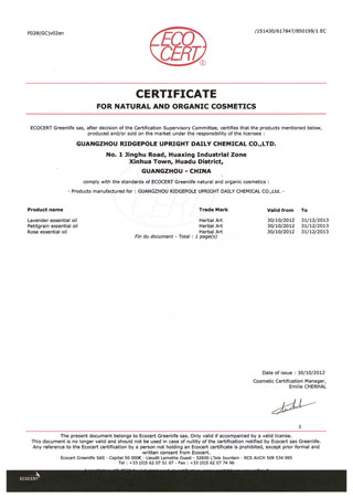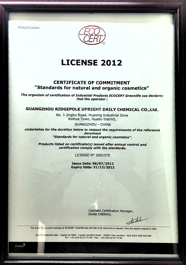 ○ 歐盟ECOCERT天然有機(jī)化妝品生產(chǎn)認(rèn)證證書(shū)